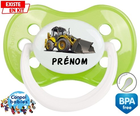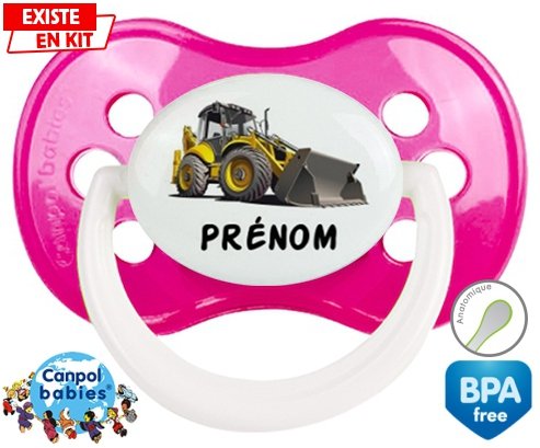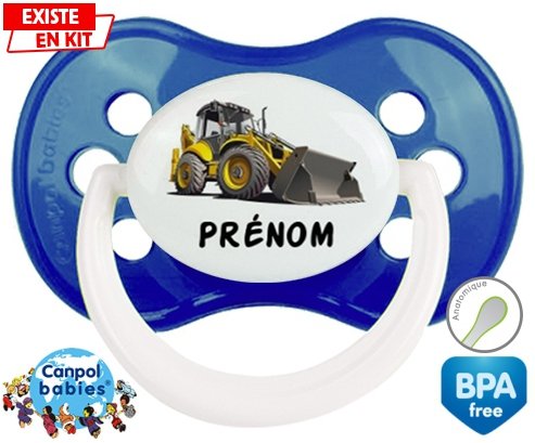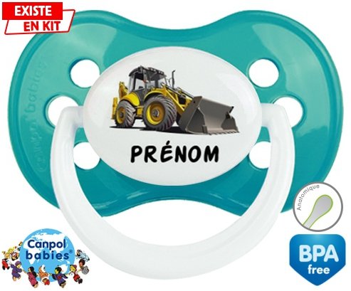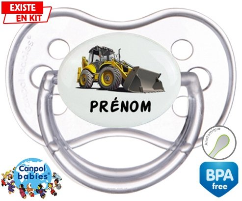 Sucette personnalisée pour bébé Pelleteuse + prénom à embout Anatomique en silicone de la marque Canpol Babies avec impression en en Couleurs de la collection Prénom personnalisé.La silicone se reconnaît par sa couleur transparente. C'est une matière souple, douce, sans goût ni odeur et offre à bébé une succion plus facile grâce à sa souplesse.