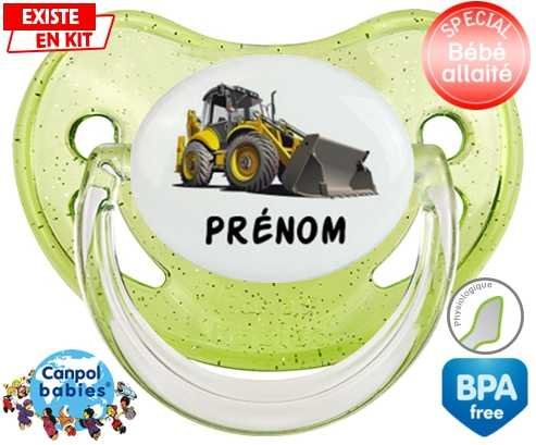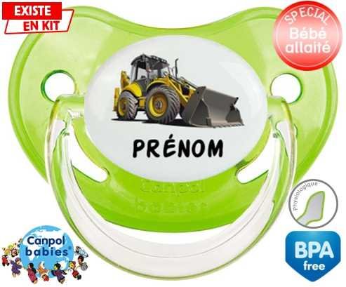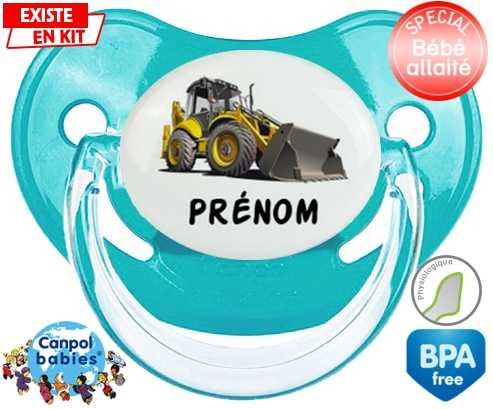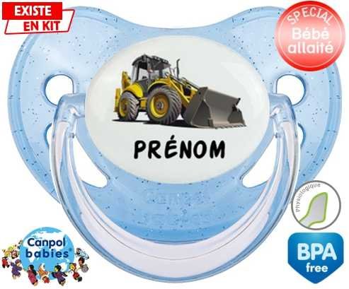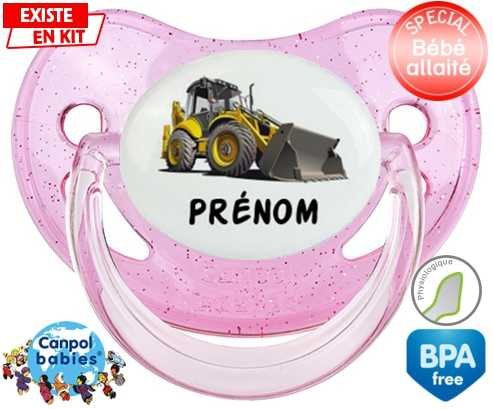 Sucette personnalisée pour bébé Pelleteuse + prénom à embout Physiologique en silicone de la marque Canpol Babies avec impression en en Couleurs de la collection Prénom personnalisé.La silicone se reconnaît par sa couleur transparente. C'est une matière souple, douce, sans goût ni odeur et offre à bébé une succion plus facile grâce à sa souplesse.