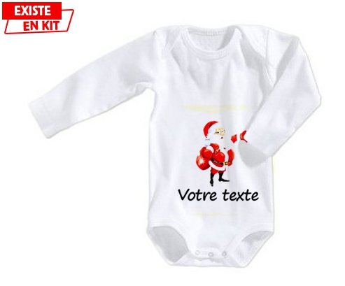 Body personnalisé Père noël et sac + prénom avec impression en couleur de fabrication européenne et composés à 100 % du coton le plus doux, il est également conçu pour être aussi pratique que joli.