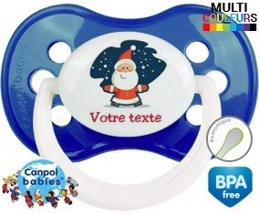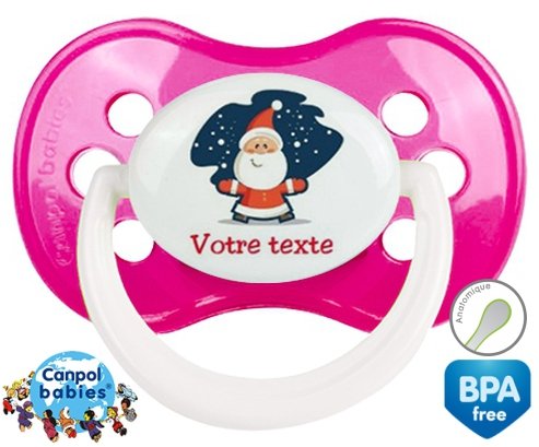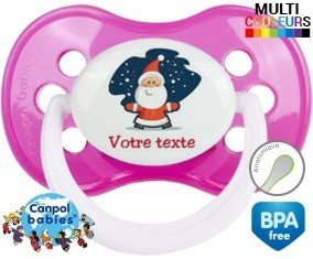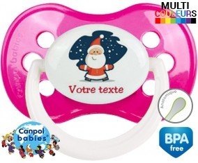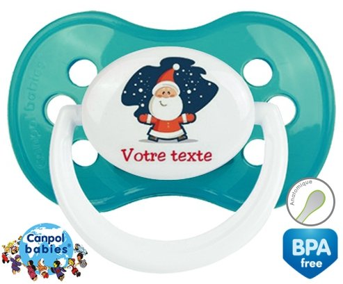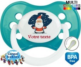 Tetine personnalisee avec le prénom pour bébé Père noël + prénom : Embout Anatomique en silicone de la marque Canpol Babies avec impression en couleur.