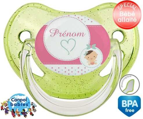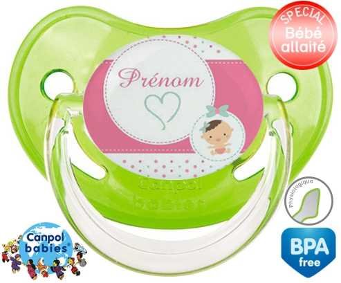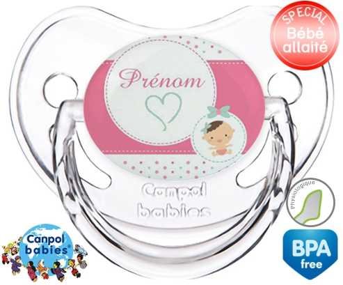 Tetine personnalisee avec le prénom pour bébé Petite (fille) + prénom : Embout Physiologique en silicone de la marque Canpol Babies avec impression en couleur.
