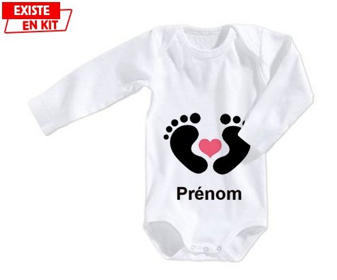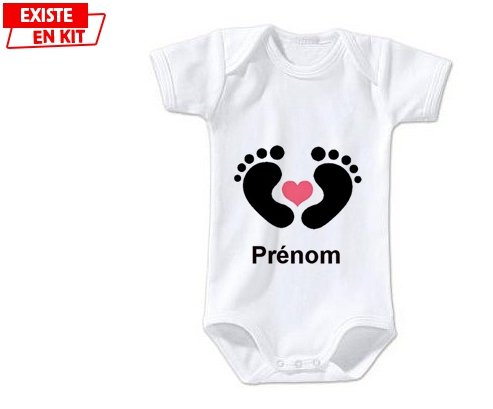 Body personnalisé Pied cœur (fille) + prénom avec impression en couleur de fabrication européenne et composés à 100 % du coton le plus doux, il est également conçu pour être aussi pratique que joli.