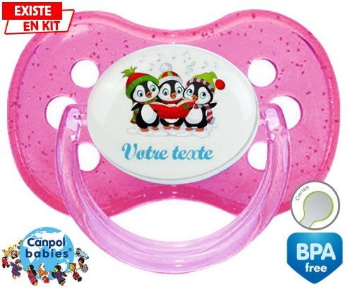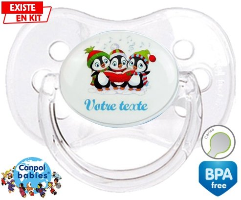 Tetine personnalisee pour bébé Pingouins + prénom à embout Cerise en silicone de la marque Canpol Babies avec impression en en Couleurs de la collection Prénom personnalisé.La silicone se reconnaît par sa couleur transparente. C'est une matière souple, douce, sans goût ni odeur et offre à bébé une succion plus facile grâce à sa souplesse.
