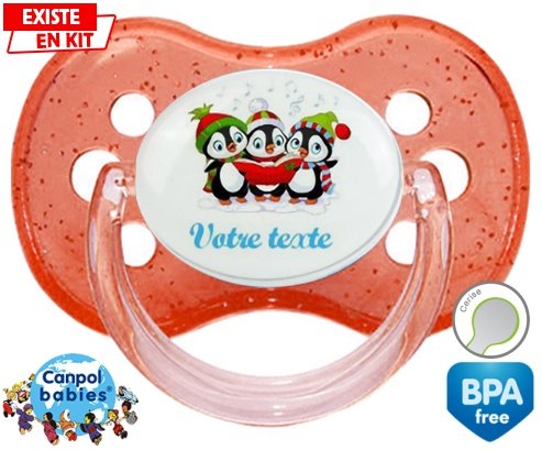 Tetine personnalisee avec le prénom pour bébé Pingouins + prénom : Embout Cerise en silicone de la marque Canpol Babies avec impression en couleur.