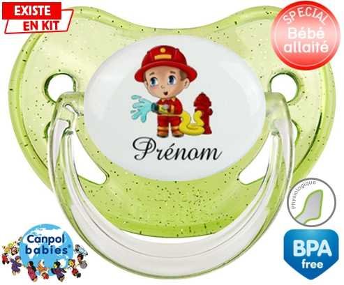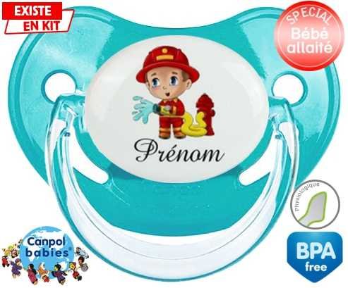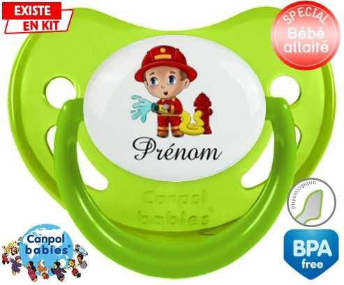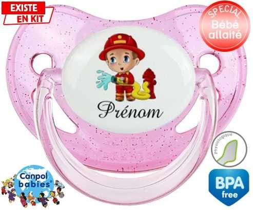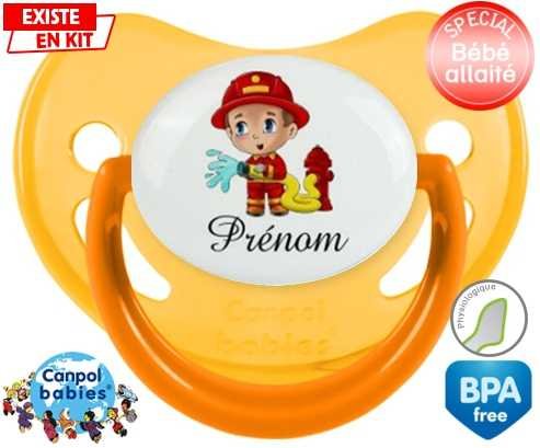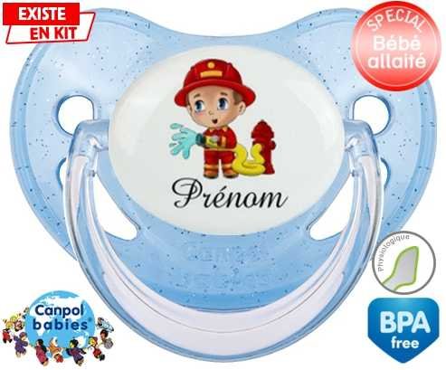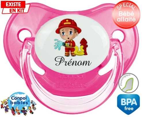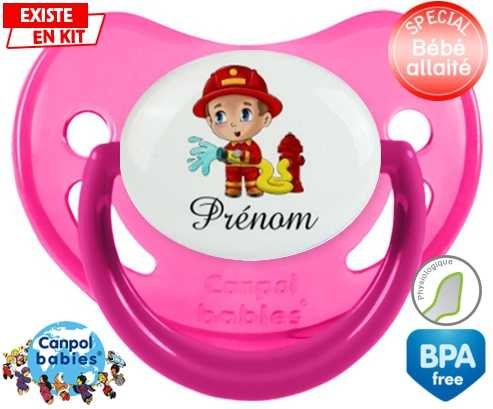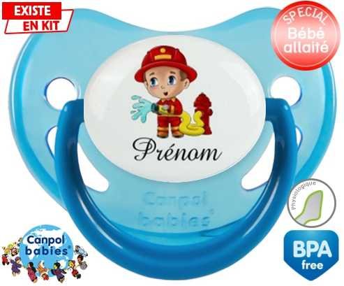 Sucette personnalisée pour bébé Pompier + prénom à embout Physiologique en silicone de la marque Canpol Babies avec impression en en Couleurs de la collection Prénom personnalisé.La silicone se reconnaît par sa couleur transparente. C'est une matière souple, douce, sans goût ni odeur et offre à bébé une succion plus facile grâce à sa souplesse.