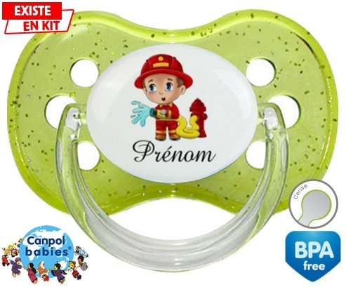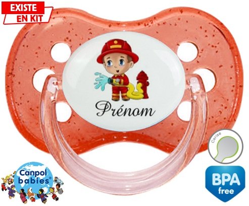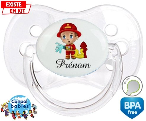 Tétine personnalisée pour bébé Pompier + prénom à embout Cerise en silicone de la marque Canpol Babies avec impression en en Couleurs de la collection Prénom personnalisé.La silicone se reconnaît par sa couleur transparente. C'est une matière souple, douce, sans goût ni odeur et offre à bébé une succion plus facile grâce à sa souplesse.