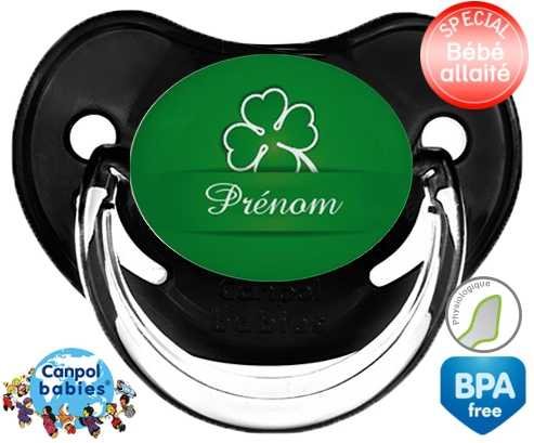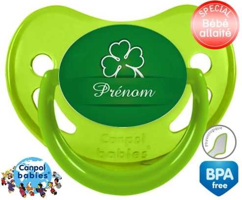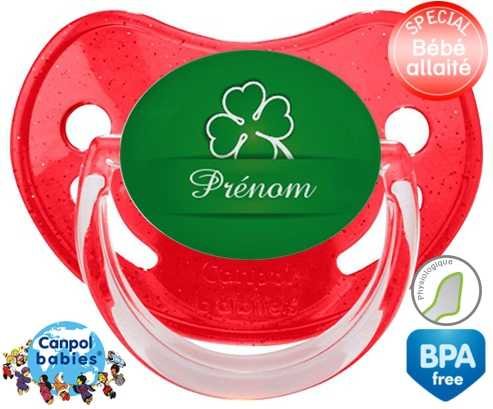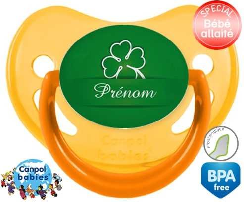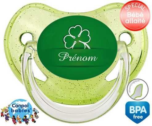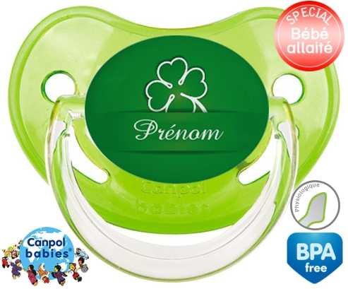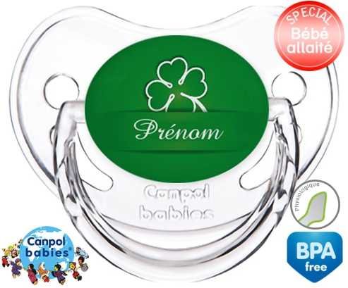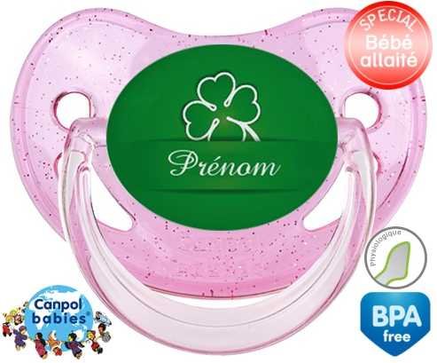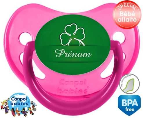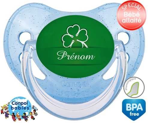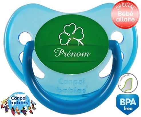 Tetine personnalisee pour bébé Porte bonheur + prénom à embout Physiologique en silicone de la marque Canpol Babies avec impression en en Couleurs de la collection Prénom personnalisé.La silicone se reconnaît par sa couleur transparente. C'est une matière souple, douce, sans goût ni odeur et offre à bébé une succion plus facile grâce à sa souplesse.