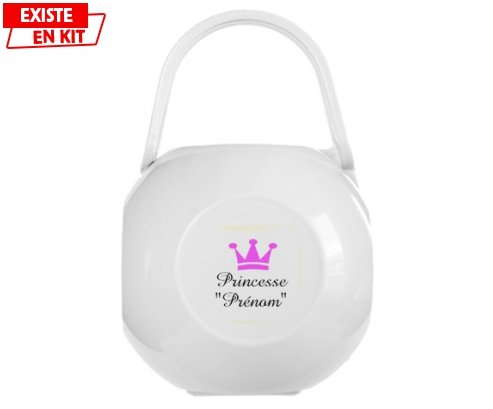 Boîte à sucette avec design : Princesse couronne + prénom , impression de qualité et en couleur. Pratique : elle transporte la sucette en tout lieu. Grâce à sa poignée souple, elle est facile à accrocher à la poussette, sac à langer ... Cette boîte de rangement flexible, est la solution hygiénique pour protéger les sucettes de son enfant quand il ne les utilise pas. Peut contenir jusqu'à deux sucettes.