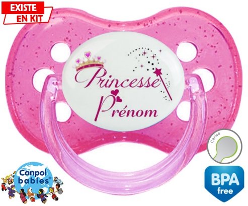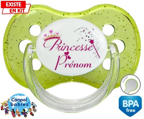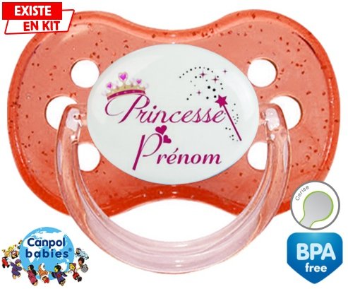 Tetine personnalisee pour bébé Princesse + prénom à embout Cerise en silicone de la marque Canpol Babies avec impression en en Couleurs de la collection Prénom personnalisé.La silicone se reconnaît par sa couleur transparente. C'est une matière souple, douce, sans goût ni odeur et offre à bébé une succion plus facile grâce à sa souplesse.