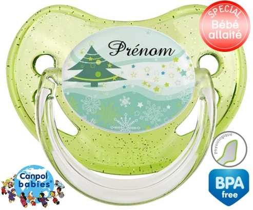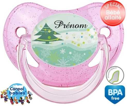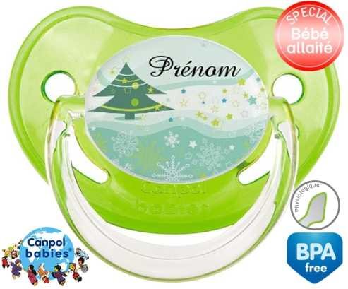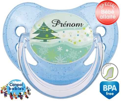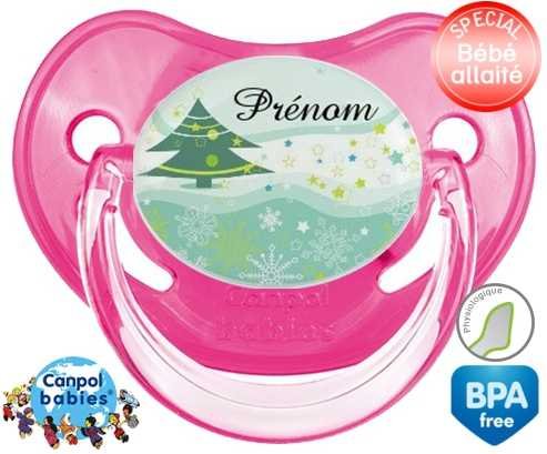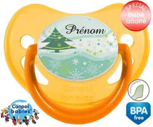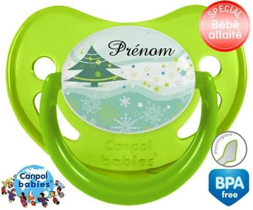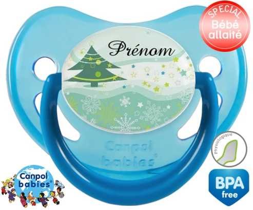 Tetine personnalisee avec le prénom pour bébé Sapin + prénom : Embout Physiologique en silicone de la marque Canpol Babies avec impression en couleur.