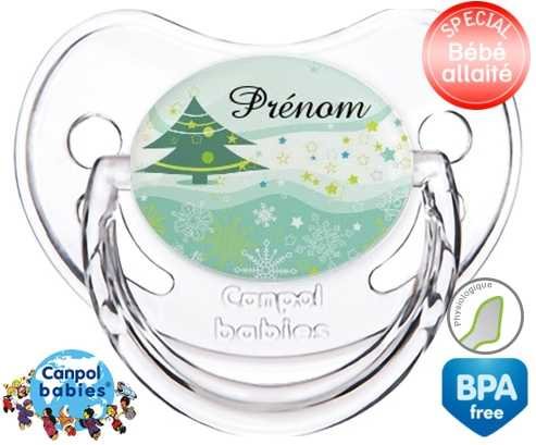 Tetine personnalisee pour bébé Sapin + prénom à embout Physiologique en silicone de la marque Canpol Babies avec impression en en Couleurs de la collection Prénom personnalisé.La silicone se reconnaît par sa couleur transparente. C'est une matière souple, douce, sans goût ni odeur et offre à bébé une succion plus facile grâce à sa souplesse.