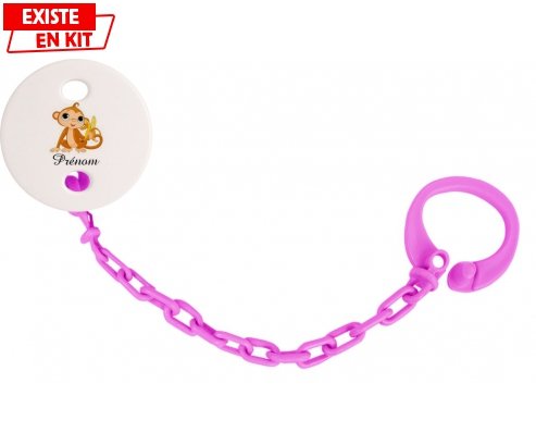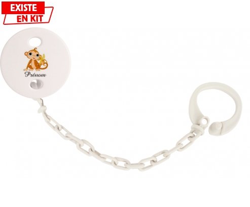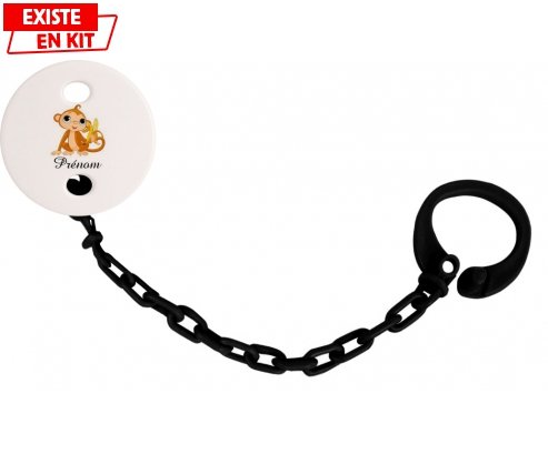 Attache-sucette personnalisé Singe banane + prénom avec personnalisation design en couleur. Disponible en plusieurs coloris et plastique facile à laver. Pratique : permet une fixation facile de la sucette de bébé à son doudou et à ses vêtements en un seul clip. Hygiénique : empêche la sucette de tomber par terre et permet ainsi à bébé d'avoir une sucette propre toute la journée Visible : facile à repérer grâce aux motifs colorés.