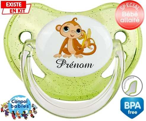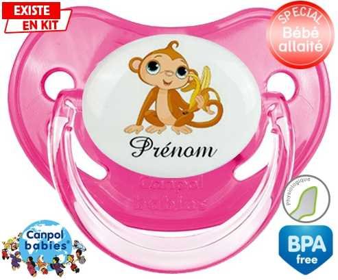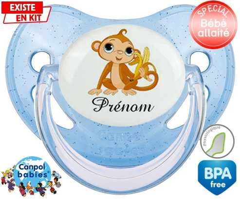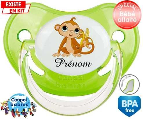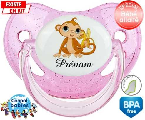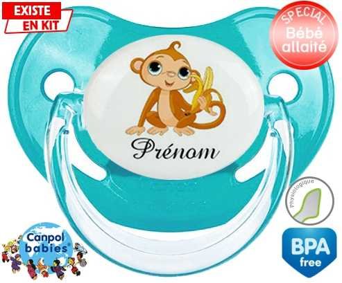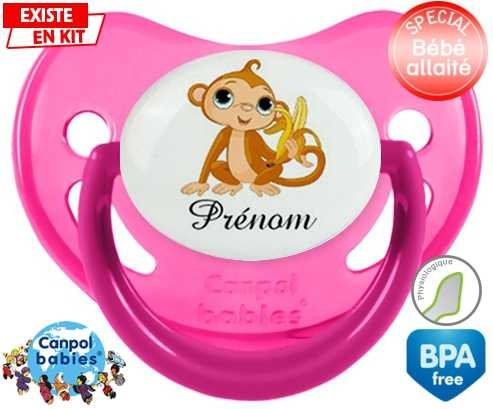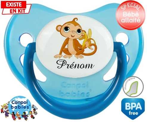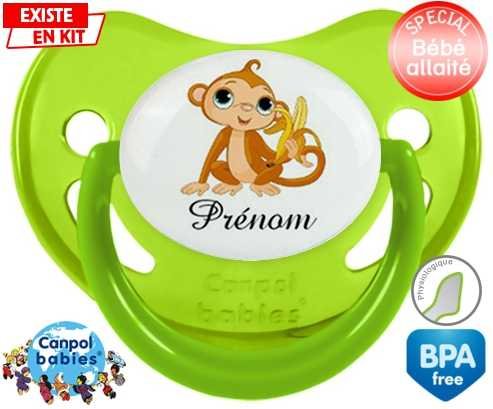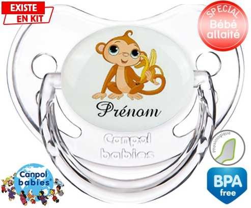 Tetine personnalisee pour bébé Singe banane + prénom à embout Physiologique en silicone de la marque Canpol Babies avec impression en en Couleurs de la collection Prénom personnalisé.La silicone se reconnaît par sa couleur transparente. C'est une matière souple, douce, sans goût ni odeur et offre à bébé une succion plus facile grâce à sa souplesse.