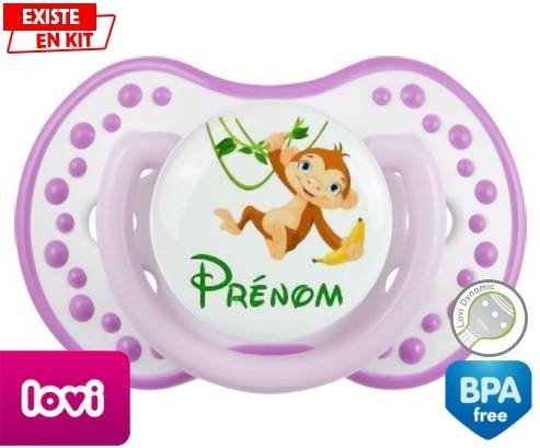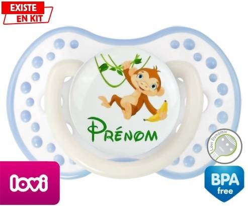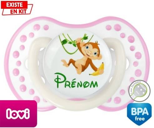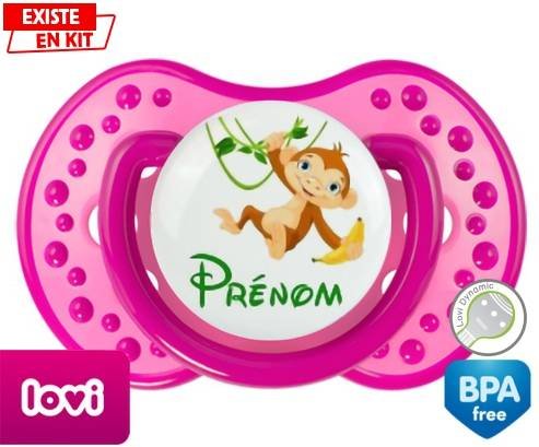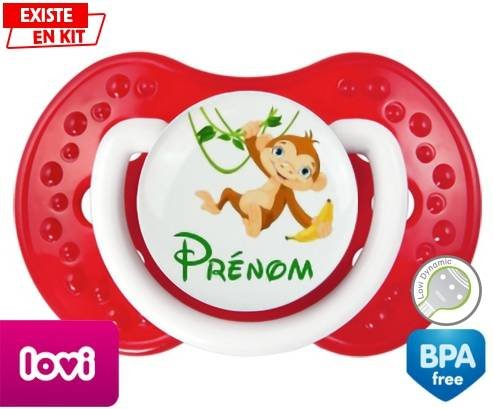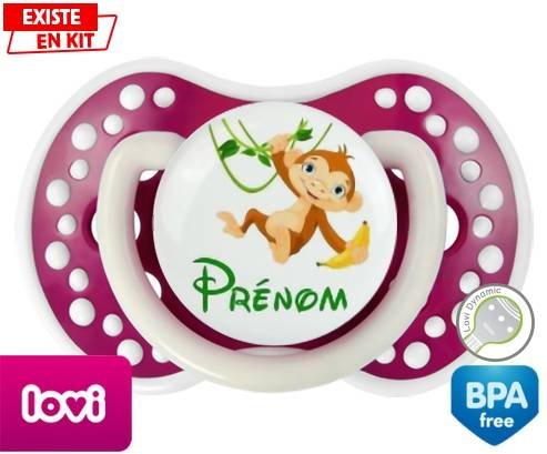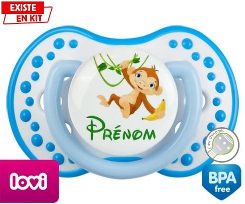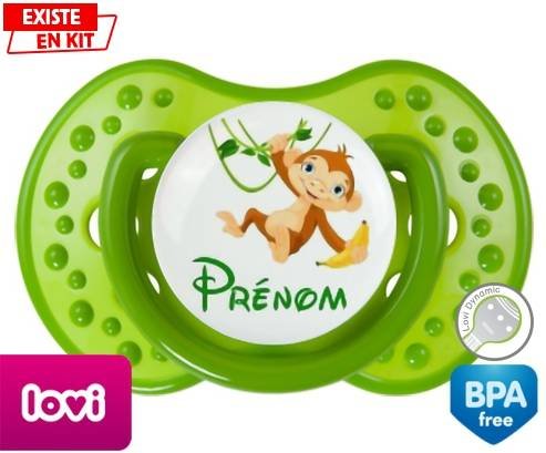 Tetine personnalisee avec le prénom pour bébé Singe style1 + prénom : Embout LOVI Dynamic en silicone de la marque Lovi Dynamic avec impression en couleur.