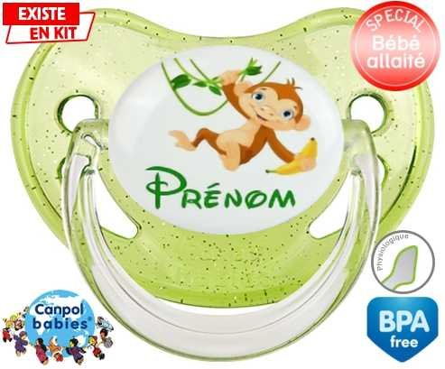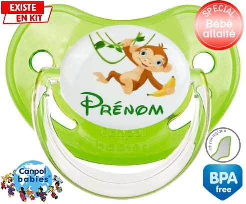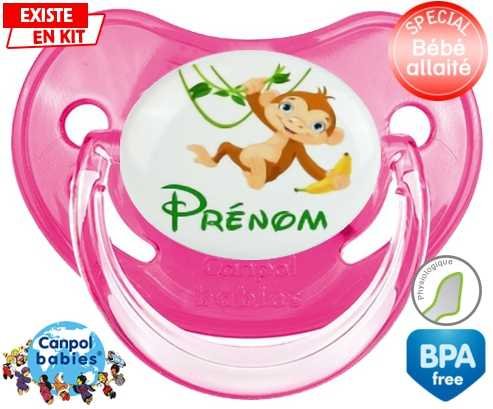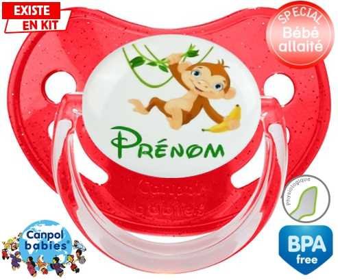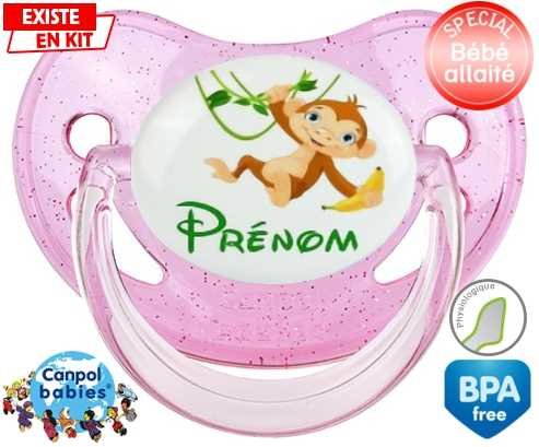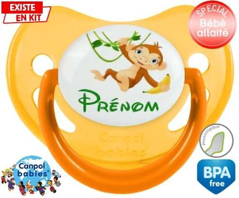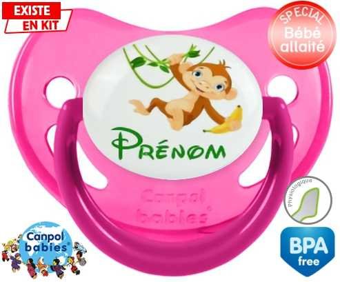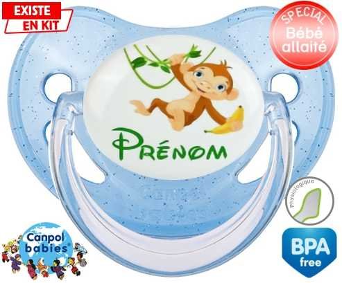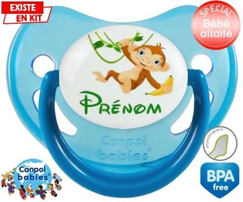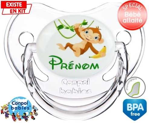 Tétine personnalisée pour bébé Singe style1 + prénom à embout Physiologique en silicone de la marque Canpol Babies avec impression en en Couleurs de la collection Prénom personnalisé.La silicone se reconnaît par sa couleur transparente. C'est une matière souple, douce, sans goût ni odeur et offre à bébé une succion plus facile grâce à sa souplesse.