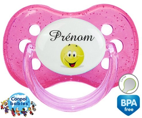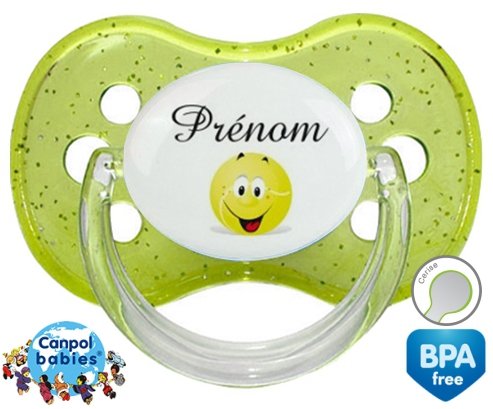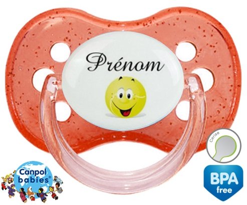 Sucette personnalisée pour bébé Tennis balle + prénom à embout Cerise en silicone de la marque Canpol Babies avec impression en en Couleurs de la collection Prénom personnalisé.La silicone se reconnaît par sa couleur transparente. C'est une matière souple, douce, sans goût ni odeur et offre à bébé une succion plus facile grâce à sa souplesse.