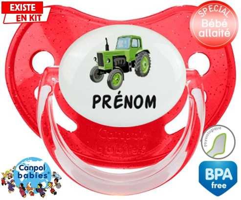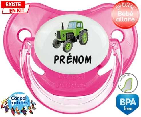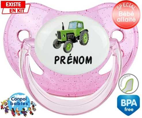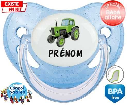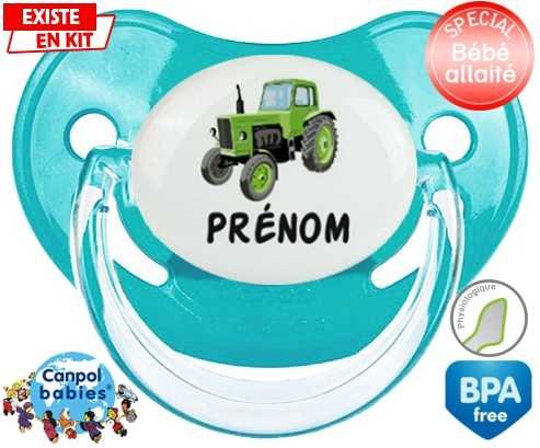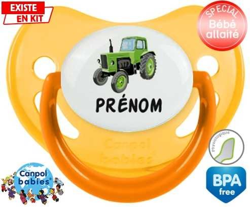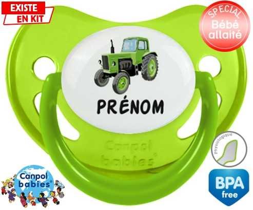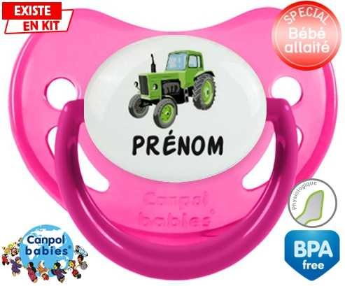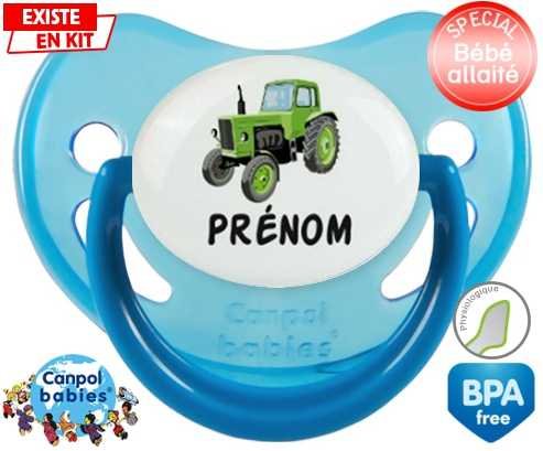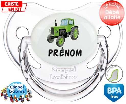 Sucette personnalisée pour bébé Tracteur + prénom à embout Physiologique en silicone de la marque Canpol Babies avec impression en en Couleurs de la collection Prénom personnalisé.La silicone se reconnaît par sa couleur transparente. C'est une matière souple, douce, sans goût ni odeur et offre à bébé une succion plus facile grâce à sa souplesse.