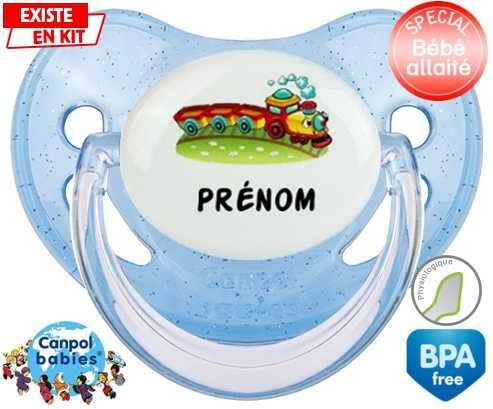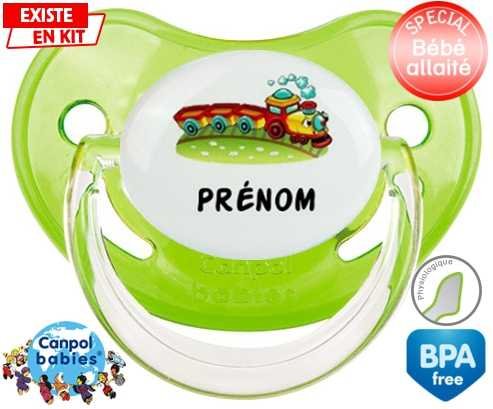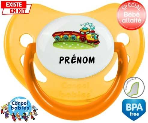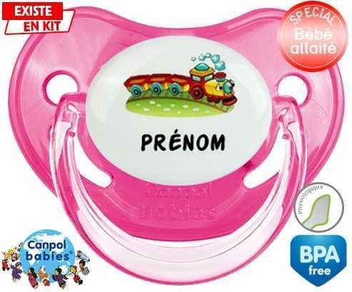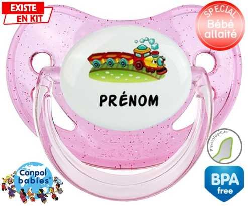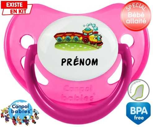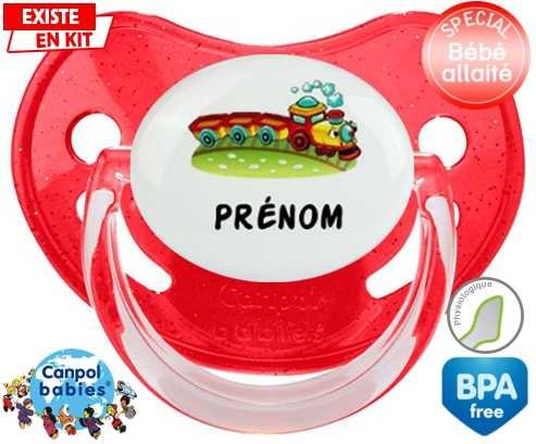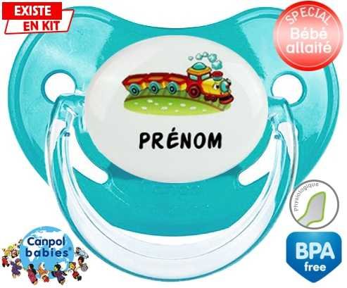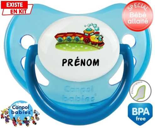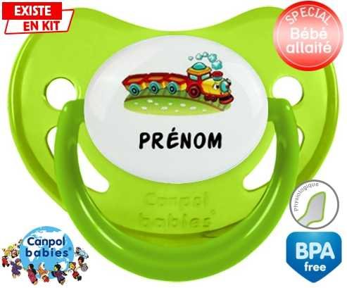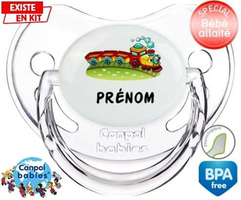 Sucette personnalisée pour bébé Train + prénom à embout Physiologique en silicone de la marque Canpol Babies avec impression en en Couleurs de la collection Prénom personnalisé.La silicone se reconnaît par sa couleur transparente. C'est une matière souple, douce, sans goût ni odeur et offre à bébé une succion plus facile grâce à sa souplesse.