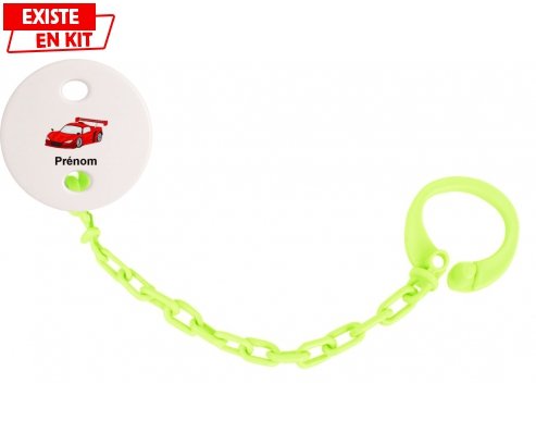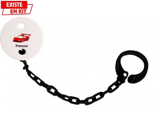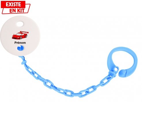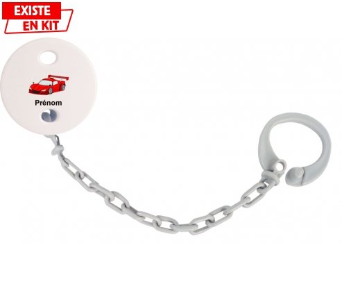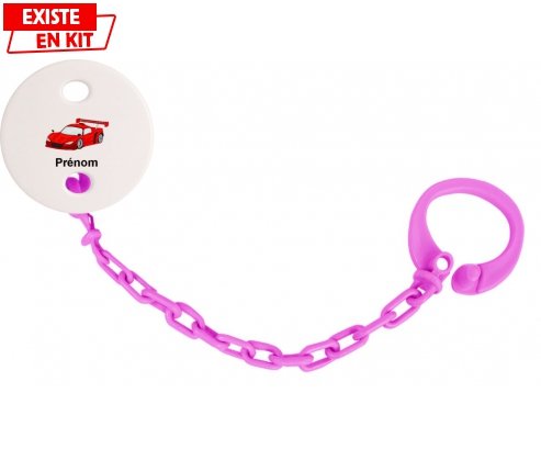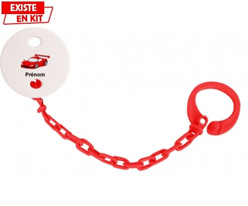 Attache-sucette personnalisé Voiture de course rouge + prénom avec personnalisation design en couleur. Disponible en plusieurs coloris et plastique facile à laver. Pratique : permet une fixation facile de la sucette de bébé à son doudou et à ses vêtements en un seul clip. Hygiénique : empêche la sucette de tomber par terre et permet ainsi à bébé d'avoir une sucette propre toute la journée Visible : facile à repérer grâce aux motifs colorés.