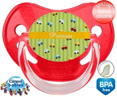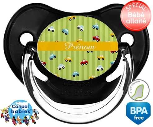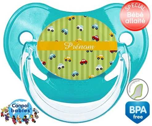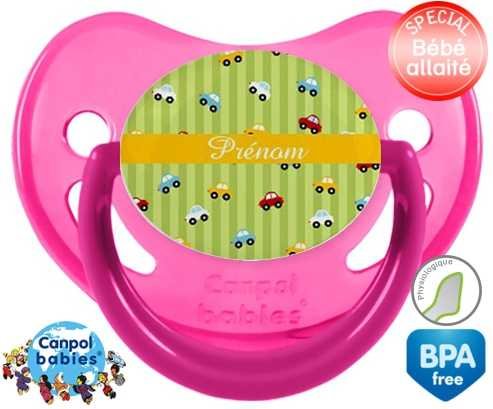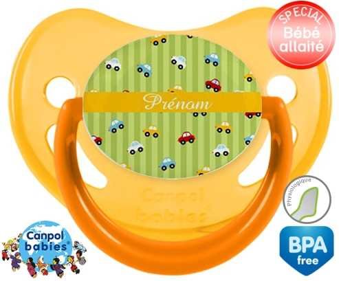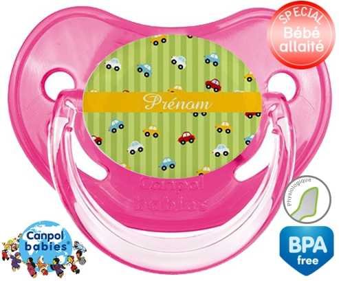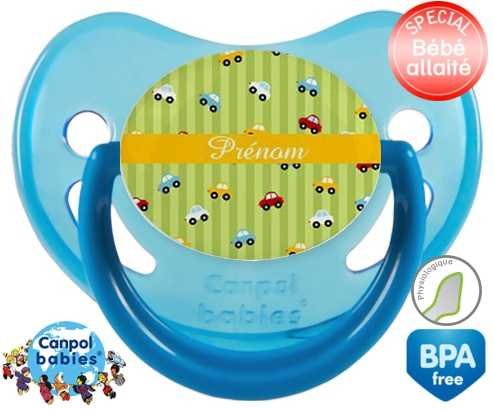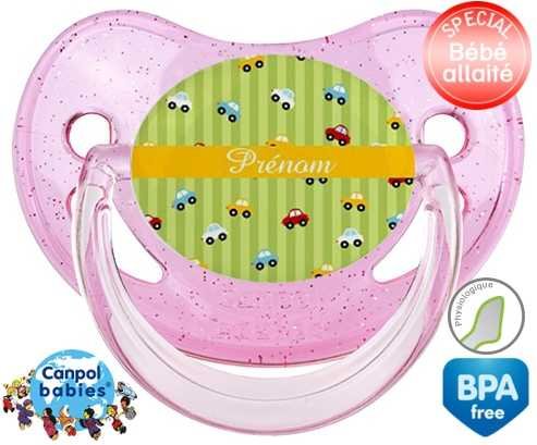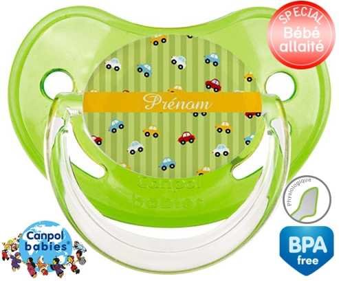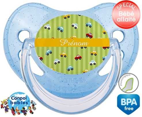 Sucette personnalisée pour bébé Voiture + prénom à embout Physiologique en silicone de la marque Canpol Babies avec impression en en Couleurs de la collection Prénom personnalisé.La silicone se reconnaît par sa couleur transparente. C'est une matière souple, douce, sans goût ni odeur et offre à bébé une succion plus facile grâce à sa souplesse.