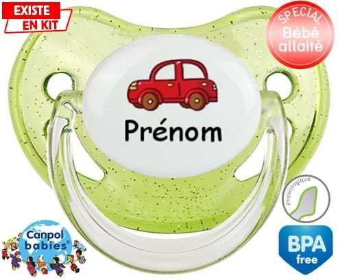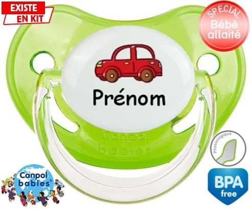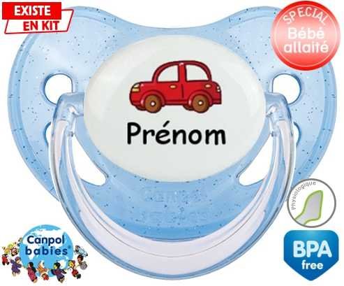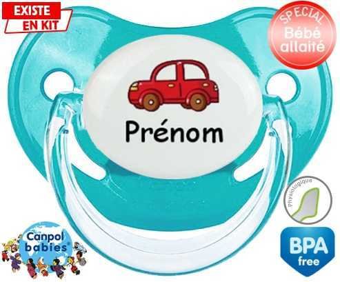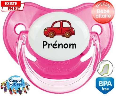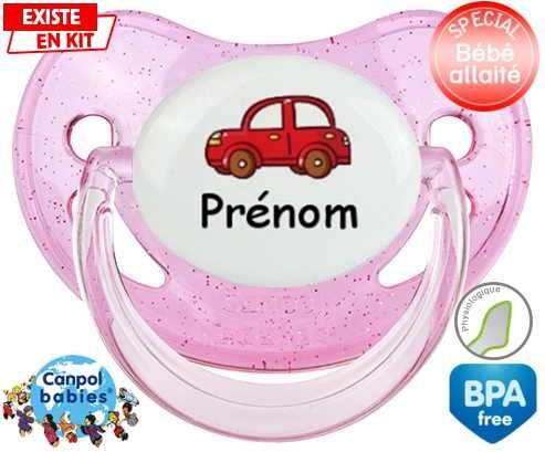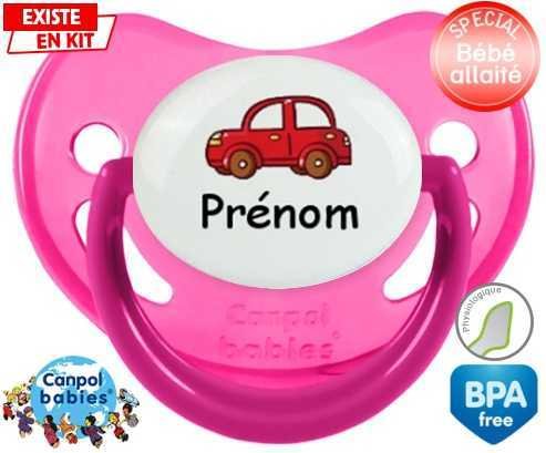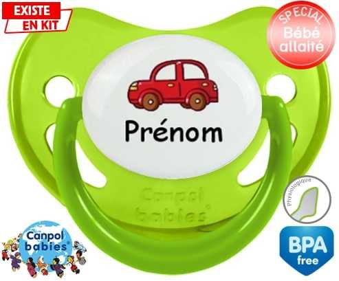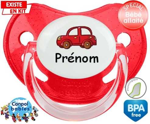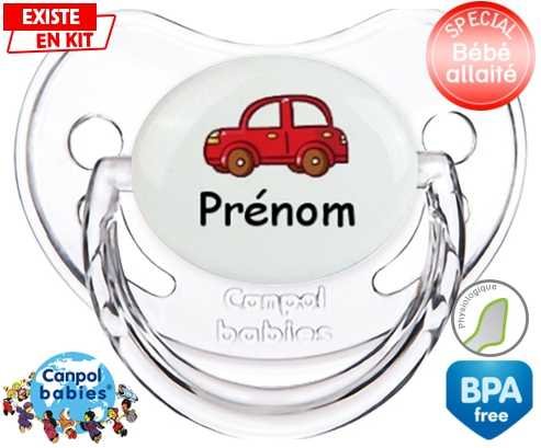 Sucette personnalisée pour bébé Voiture rouge + prénom à embout Physiologique en silicone de la marque Canpol Babies avec impression en en Couleurs de la collection Prénom personnalisé.La silicone se reconnaît par sa couleur transparente. C'est une matière souple, douce, sans goût ni odeur et offre à bébé une succion plus facile grâce à sa souplesse.