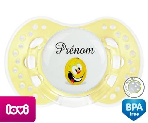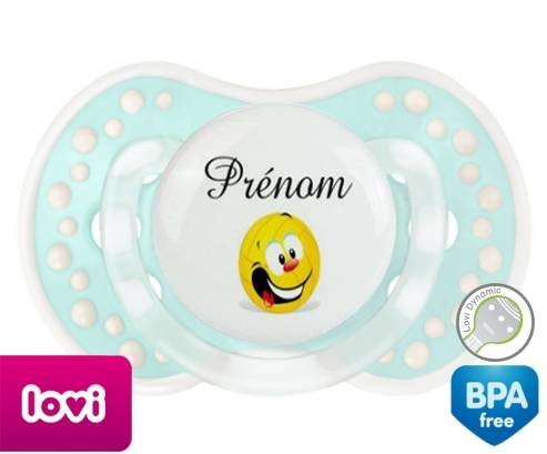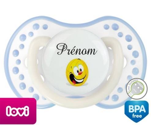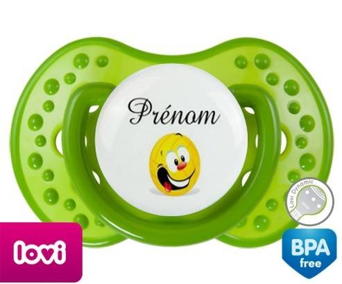 Tetine personnalisee pour bébé Volley ballon + prénom à embout LOVI Dynamic en silicone de la marque Lovi Dynamic avec impression en en Couleurs de la collection Prénom personnalisé.La silicone se reconnaît par sa couleur transparente. C'est une matière souple, douce, sans goût ni odeur et offre à bébé une succion plus facile grâce à sa souplesse.