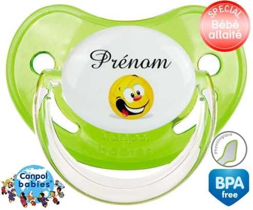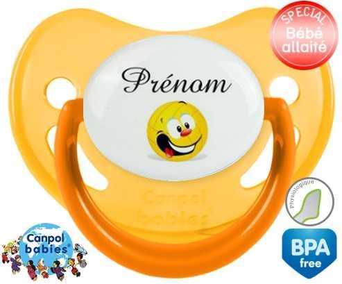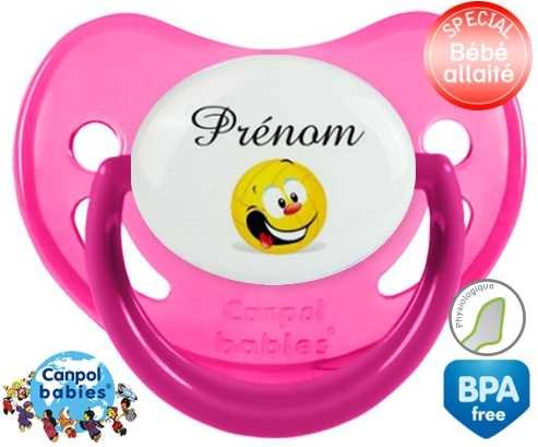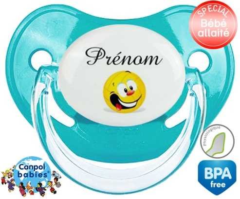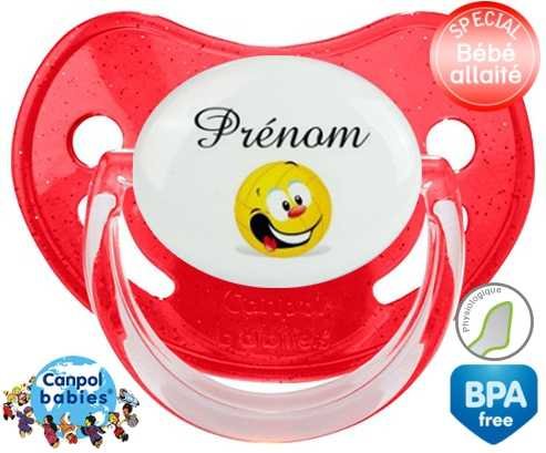 Tétine personnalisée pour bébé Volley ballon + prénom à embout Physiologique en silicone de la marque Canpol Babies avec impression en en Couleurs de la collection Prénom personnalisé.La silicone se reconnaît par sa couleur transparente. C'est une matière souple, douce, sans goût ni odeur et offre à bébé une succion plus facile grâce à sa souplesse.