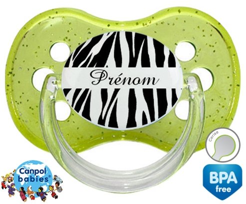 Tétine personnalisée pour bébé Zèbre style2 + prénom à embout Cerise en silicone de la marque Canpol Babies avec impression en en Couleurs de la collection Prénom personnalisé.La silicone se reconnaît par sa couleur transparente. C'est une matière souple, douce, sans goût ni odeur et offre à bébé une succion plus facile grâce à sa souplesse.