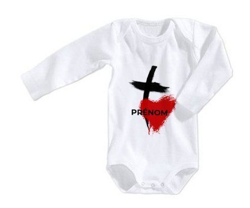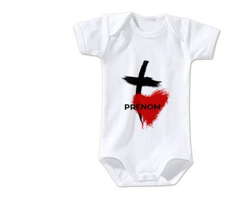 Body personnalisé Croix + cœur avec prénom avec impression en couleur de fabrication européenne et composés à 100 % du coton le plus doux, il est également conçu pour être aussi pratique que joli.