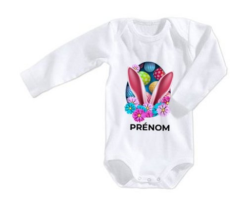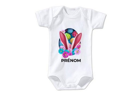Body personnalisé Oeuf de Pâques design-13 avec prénom avec impression en couleur de fabrication européenne et composés à 100 % du coton le plus doux, il est également conçu pour être aussi pratique que joli.