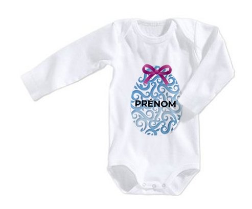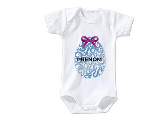Body personnalisé Oeuf de Pâques design-14 avec prénom avec impression en couleur de fabrication européenne et composés à 100 % du coton le plus doux, il est également conçu pour être aussi pratique que joli.