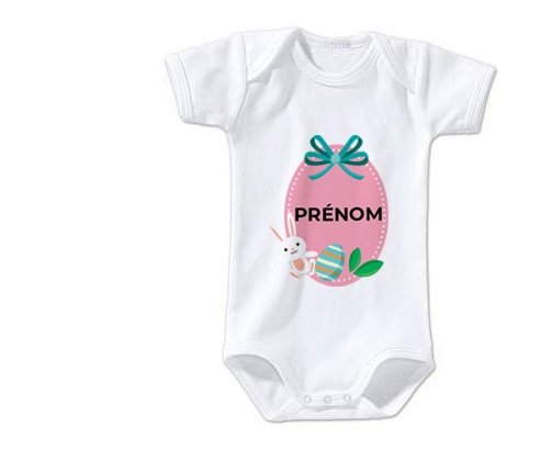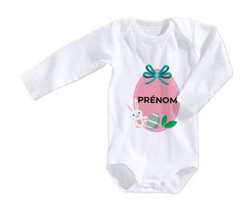 Body personnalisé Oeuf de Pâques design-4 avec prénom avec impression en couleur de fabrication européenne et composés à 100 % du coton le plus doux, il est également conçu pour être aussi pratique que joli.