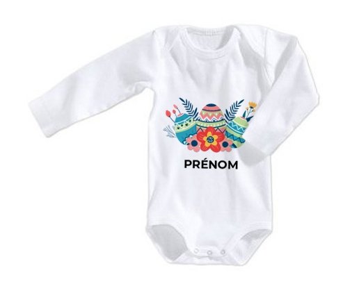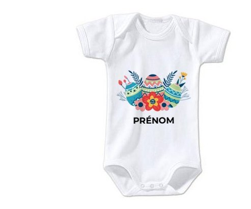 Body personnalisé Oeuf de Pâques design-5 avec prénom avec impression en couleur de fabrication européenne et composés à 100 % du coton le plus doux, il est également conçu pour être aussi pratique que joli.