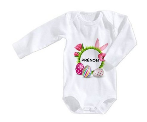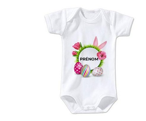 Body personnalisé Oeuf de Pâques design-6 avec prénom avec impression en couleur de fabrication européenne et composés à 100 % du coton le plus doux, il est également conçu pour être aussi pratique que joli.