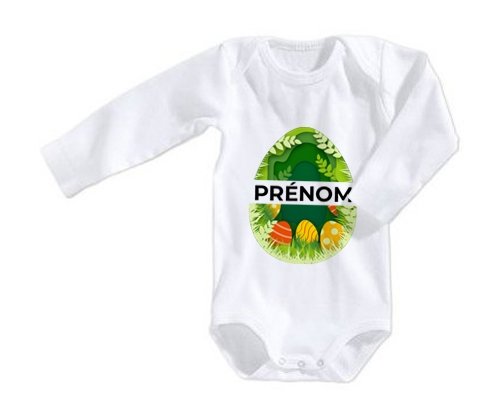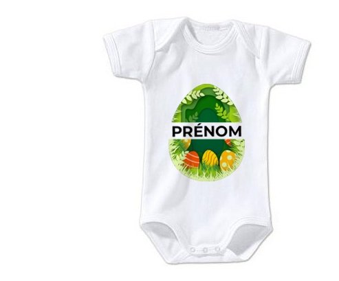 Body personnalisé Oeuf de Pâques design-7 avec prénom avec impression en couleur de fabrication européenne et composés à 100 % du coton le plus doux, il est également conçu pour être aussi pratique que joli.