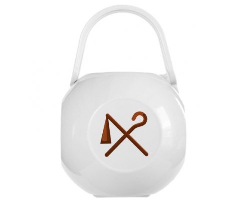 Boîte à tetine personnalisée : Les symboles égyptiens du pouvoir antique bâton et fléau , avec une impression en couleur et qui compléte toute la gamme ( tétine, attache-tétine, bavoir, chausson, body et bonnet).