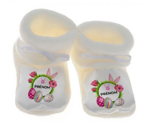Chausson bébé Oeuf de Pâques design-10 avec prénom
