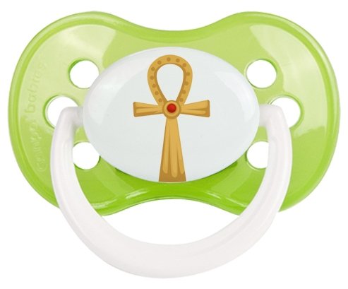 Sucette personnalisée Sans Prénom pour bébé Croix copte égyptienne en or ou ankh avec rustone ( Croix de la vie ) en silicone de la marque Canpol Babies avec impression en couleur.