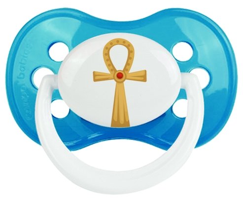 Sucette personnalisée pour bébé Croix copte égyptienne en or ou ankh avec rustone ( Croix de la vie ) à embout Anatomique en silicone de la marque Canpol Babies avec impression en en Couleurs de la Collection Pays / Équipes .La silicone se reconnaît par sa couleur transparente. C'est une matière souple, douce, sans goût ni odeur et offre à bébé une succion plus facile grâce à sa souplesse.
