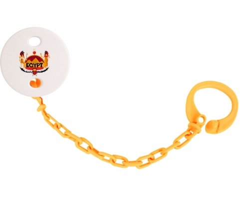 Attache-tétine personnalisé Égypte ancienne avec personnalisation design en couleur. Disponible en plusieurs coloris et plastique facile à laver. Pratique : permet une fixation facile de la sucette de bébé à son doudou et à ses vêtements en un seul clip. Hygiénique : empêche la sucette de tomber par terre et permet ainsi à bébé d'avoir une sucette propre toute la journée Visible : facile à repérer grâce aux motifs colorés.