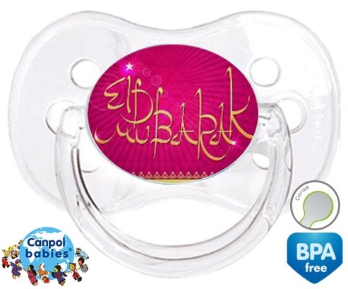 Sucette personnalisée pour bébé Eldbarak à embout Cerise en silicone de la marque Canpol Babies avec impression en en Couleurs de la collection Religion / Croyance.La silicone se reconnaît par sa couleur transparente. C'est une matière souple, douce, sans goût ni odeur et offre à bébé une succion plus facile grâce à sa souplesse.