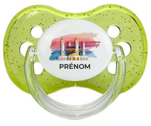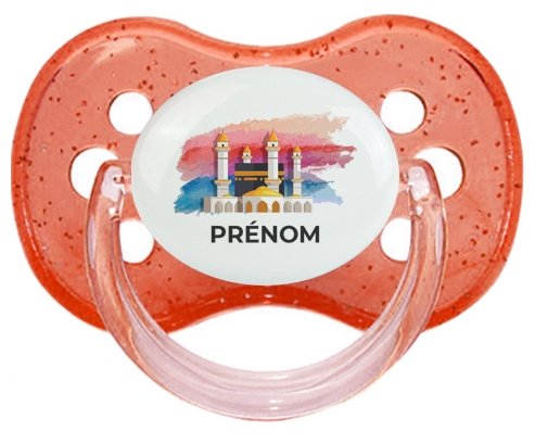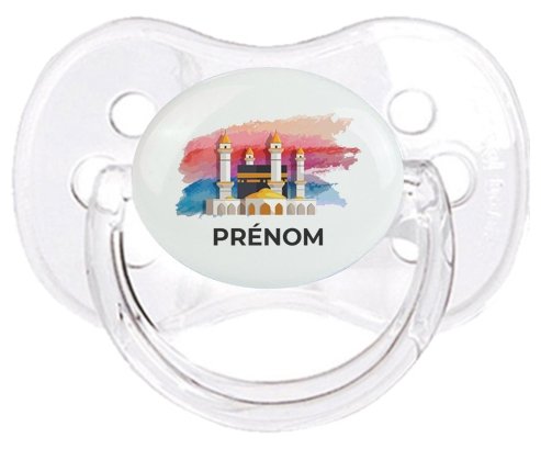 Sucette personnalisée pour bébé design : Islam Mecque design-2 avec prénom Sucette Cerise en silicone de la marque Canpol Babies avec impression en couleur.un cadeau idéal pour vos bébés. Nos sucettes sont conçues avec l'aide de pédiatres et de dentistes pour respecter la physiologie de bébé et répondre à son réflexe naturel de succion.