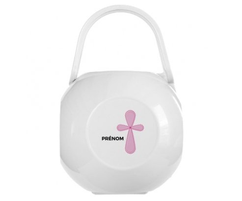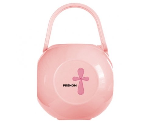 Boîte à sucette avec design : It's a girl croix rose + prénom , impression de qualité et en couleur. Pratique : elle transporte la sucette en tout lieu. Grâce à sa poignée souple, elle est facile à accrocher à la poussette, sac à langer ... Cette boîte de rangement flexible, est la solution hygiénique pour protéger les sucettes de son enfant quand il ne les utilise pas. Peut contenir jusqu'à deux sucettes.
