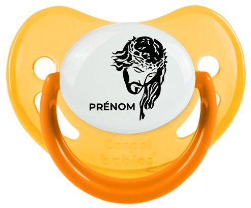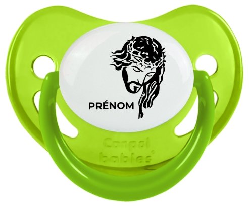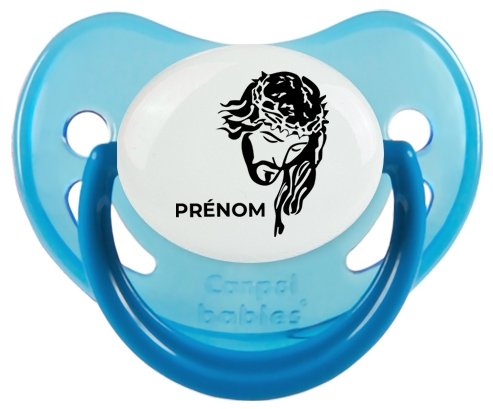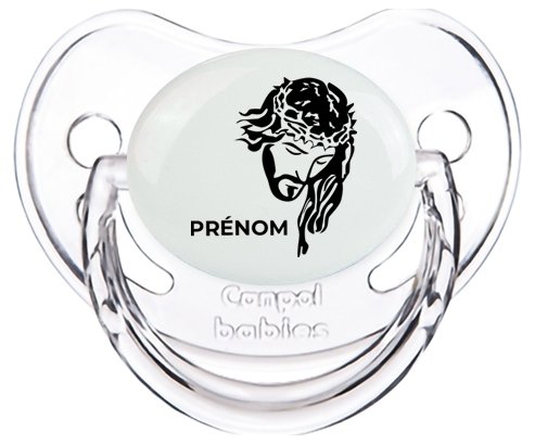 Sucette personnalisée pour bébé design : Jesus Christ design-1 avec prénom Sucette Physiologique en silicone de la marque Canpol Babies avec impression en couleur.un cadeau idéal pour vos bébés. Nos sucettes sont conçues avec l'aide de pédiatres et de dentistes pour respecter la physiologie de bébé et répondre à son réflexe naturel de succion.
