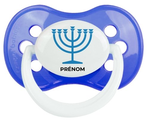 Sucette personnalisée pour bébé design : Judaisme : Menorah Sucette Anatomique en silicone de la marque Canpol Babies avec impression en couleur.un cadeau idéal pour vos bébés. Nos sucettes sont conçues avec l'aide de pédiatres et de dentistes pour respecter la physiologie de bébé et répondre à son réflexe naturel de succion.