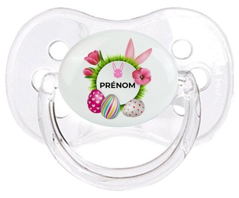 Sucette personnalisée pour bébé design : Oeuf de Pâques design-10 avec prénom Sucette Cerise en silicone de la marque Canpol Babies avec impression en couleur.un cadeau idéal pour vos bébés. Nos sucettes sont conçues avec l'aide de pédiatres et de dentistes pour respecter la physiologie de bébé et répondre à son réflexe naturel de succion.