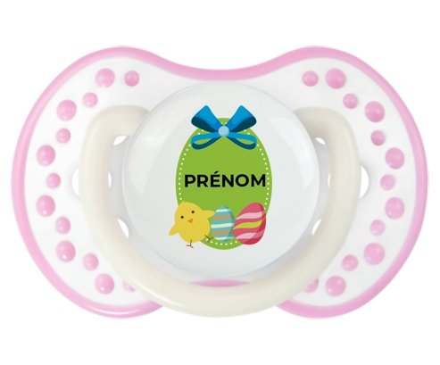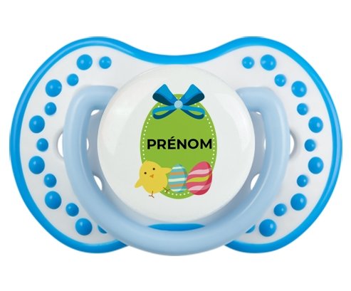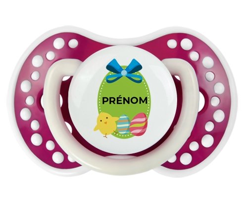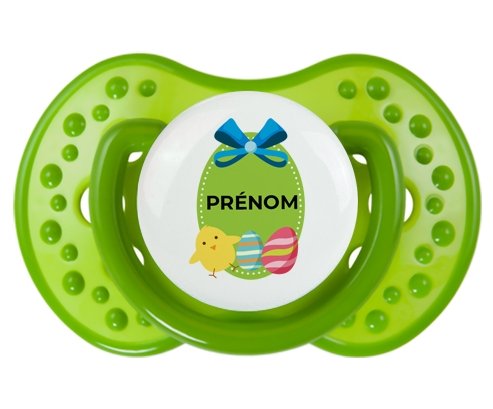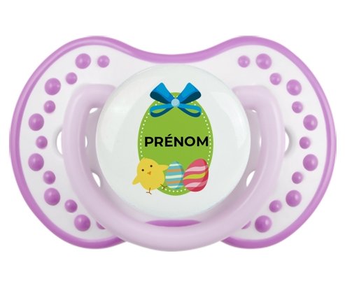 Tétine personnalisée pour bébé avec le design : Oeuf de Pâques design-3 avec prénom Sucette LOVI Dynamic en silicone de la marque Lovi Dynamic avec impression en couleur.un cadeau idéal pour vos bébés. Nos sucettes sont conçues avec l'aide de pédiatres et de dentistes pour respecter la physiologie de bébé et répondre à son réflexe naturel de succion.
