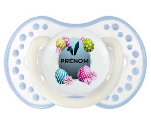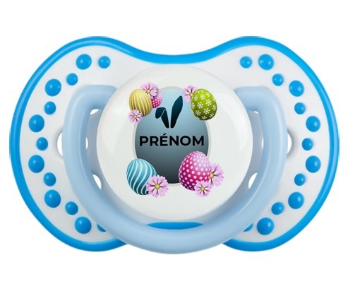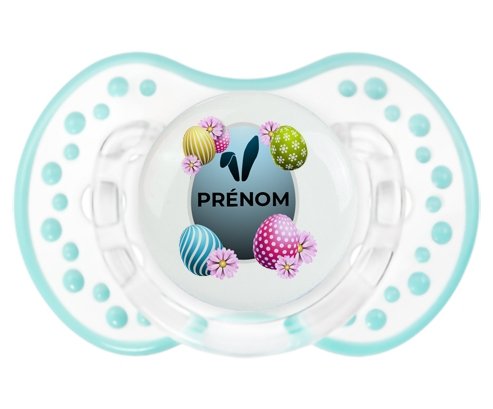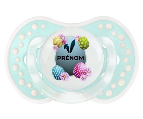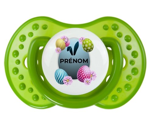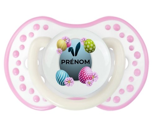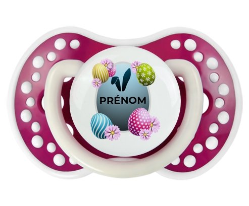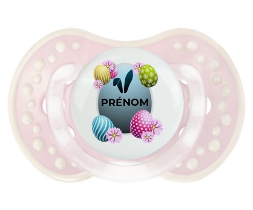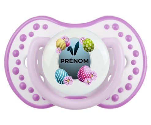 Sucette personnalisée pour bébé avec le design : Oeuf de Pâques design-8 avec prénom Sucette LOVI Dynamic en silicone de la marque Lovi Dynamic avec impression en couleur.un cadeau idéal pour vos bébés. Nos sucettes sont conçues avec l'aide de pédiatres et de dentistes pour respecter la physiologie de bébé et répondre à son réflexe naturel de succion.