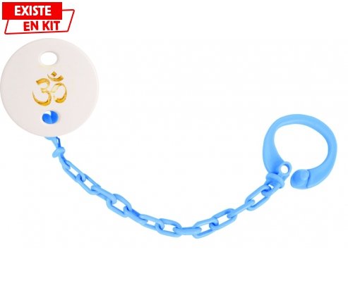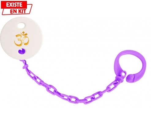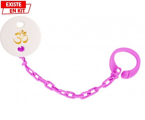 Attache-sucette personnalisé Om hintra hindou avec personnalisation design en couleur. Disponible en plusieurs coloris et plastique facile à laver. Pratique : permet une fixation facile de la sucette de bébé à son doudou et à ses vêtements en un seul clip. Hygiénique : empêche la sucette de tomber par terre et permet ainsi à bébé d'avoir une sucette propre toute la journée Visible : facile à repérer grâce aux motifs colorés.
