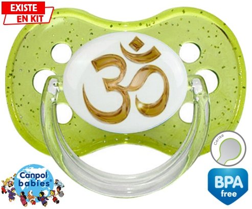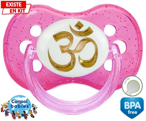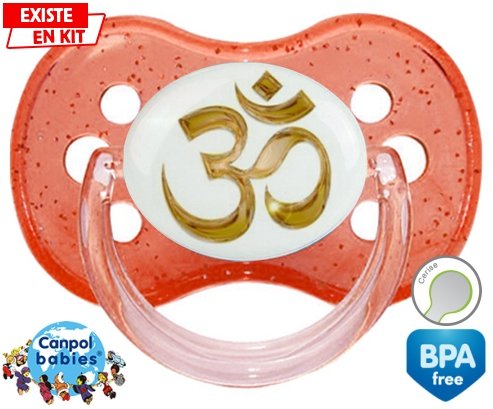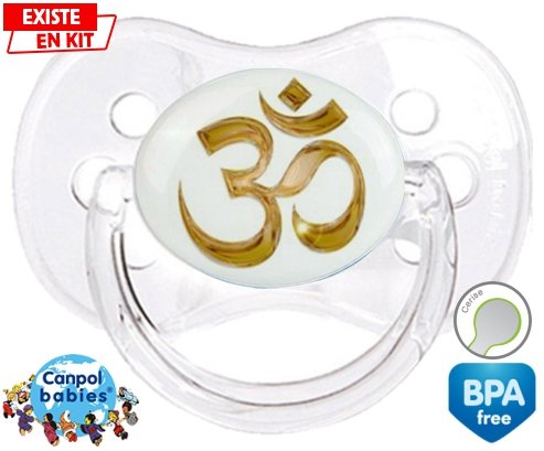 Tetine personnalisee pour bébé Om hintra hindou à embout Cerise en silicone de la marque Canpol Babies avec impression en en Couleurs de la collection Message.La silicone se reconnaît par sa couleur transparente. C'est une matière souple, douce, sans goût ni odeur et offre à bébé une succion plus facile grâce à sa souplesse.